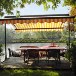 Конструкция очень мобильна, монтаж и демонтаж осуществляются легко и быстро. Прочные руки выдвигаются синхронно с обеих сторон. Передние профиля с обеих сторон оснащены водосточными желобами. В закрытом состоянии короб надежно защищает руки и ткань. Перекладины на несущих балках или грунтовые гильзы придают конструкции высокую стабильность. Угол наклона изменяется от 10 до 20 градусов.